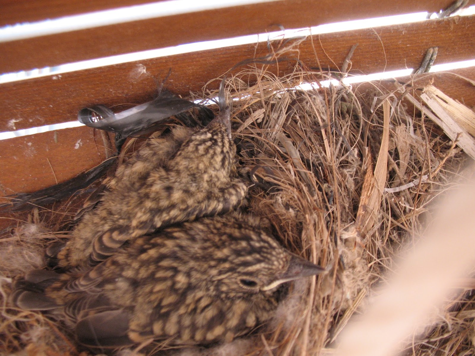 Ja comentàvem en l’entrada dels pardalets què, a més del cap, en teníem la casa plena. La ubicació del niu dins la cistella era allò que feia més curiosa la presencia del niuet d’aquella mosqueta. En els següents exemples trobem un niu en un ficus benjamina, un altre en una palmera, ben prop de la mar, i aquest primer construït damunt la persiana enrotllada, tots tres ben prop dels humans, “bípedos implumes” com li agradava dir a Unamuno. No cal dir que vam haver d’esperar el vol dels ocells per abaixar la persiana.