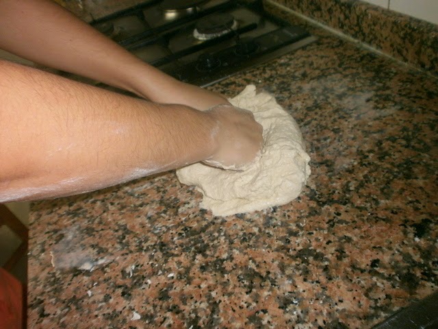 Quan l’estem barrejant, li posem una mica d’aigua per a que no es quede la farina solta.