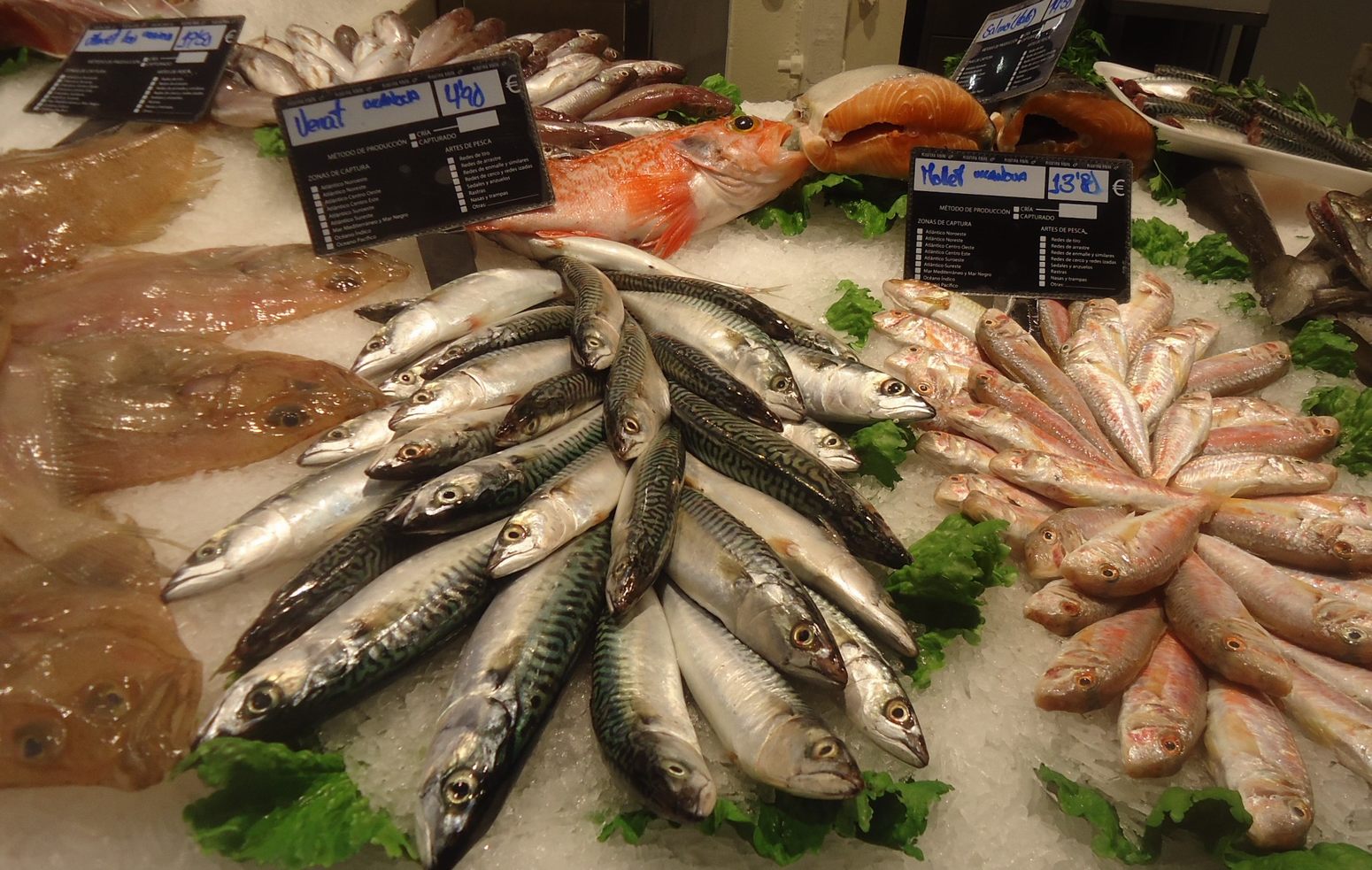 Un canvi bàsic ha estat el pas de les pescateries i paradetes del mercat del peix a allò que en diuen grans superfícies o supermercats. I d’aquests darrers, dos de ben coneguts porten nom valencià i, tots dos per al bon consum i per al mercat que no dóna, tenen una secció de peix fresc. Com que el peix fresc encara no havia patit massa traduccions esperàvem que la retolació tinguera a bé mostrar el seu nom tal i com l’havíem conegut sempre, a la mar, a la llotja i al mercat. Heus ací, però, que el llobarro ha perdut la seua identitat i tots el coneixen com a lubina, la mussola (caralló) ja és cazón, ni tan sol caçó (també valencià). Veritat és que, de tant en tant, ens regalen allò de la llengua emblemàtica i retolen ‘peix fresc’, al costat sempre, clar està, de ‘pescado fresco’ i aconsellen consumir ‘aladroc’ i ‘boquerón’. La retolació, però, de cadascuna de les espècies exposades es troba sistemàticament en castellà, amb la qual cosa es perden els noms que sempre hem dit (mòllera, abadegets, mollets, corballs, ratjada o escrita…).