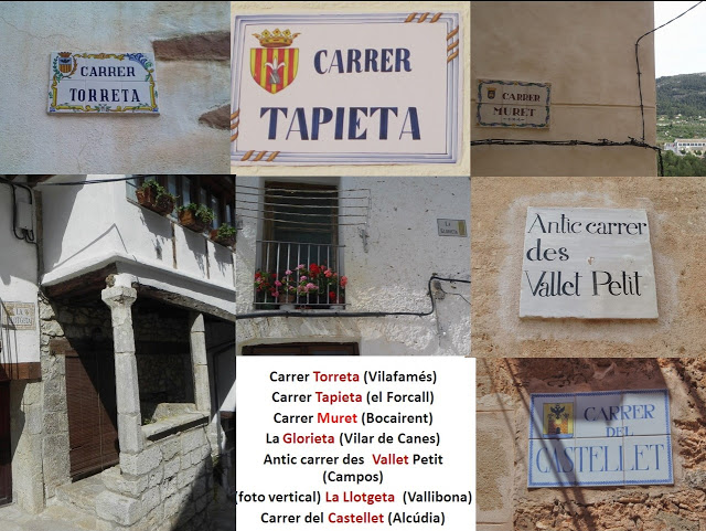 El carrer del castellet pertany a Alcúdia, a l’illa de Mallorca. Tant el carrer Torreta, de Vilafamés, com el carrer Muret, de Bocairent i el carrer Tapieta, el Forcall, prescindeixen de la preposició. Aquesta absència només es justifica en aquells carrers en què l’especificatiu ens explica alguna qualitat del carrer (estret, llarg, fosc, blanc…). Recordeu l’entrada Carrers (14) la qualitat