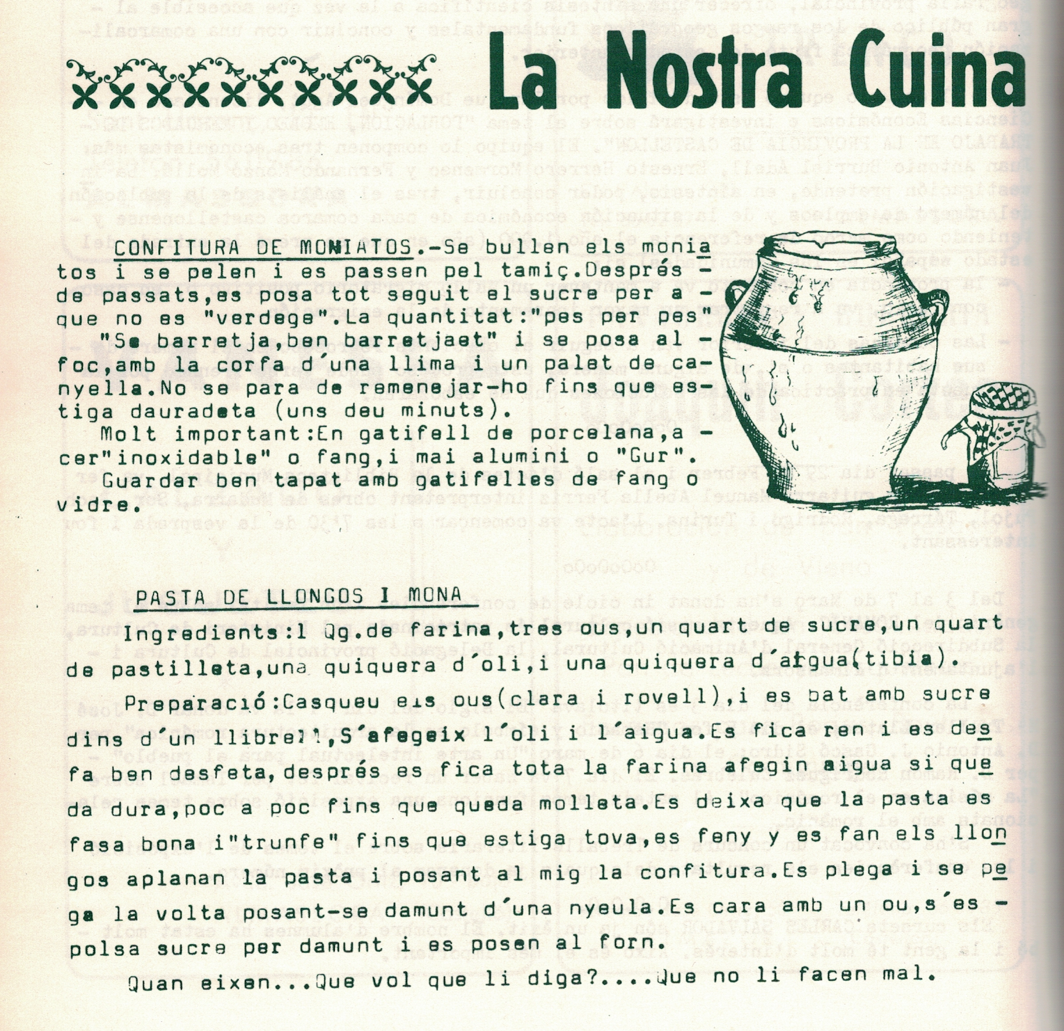 Com que açò del confinament, si som conscients i solidaris, ens portarà molts dies casolans, no estarà de més afegir qualque recepta i algun comentari lèxic que, en aquest cas, ens aboca al ‘confitament’; encara que només siga allò d’omplir de confitets la part de damunt de les mones… I heus ací que a Almassora, aquests dies, a més de mones fem llongos.