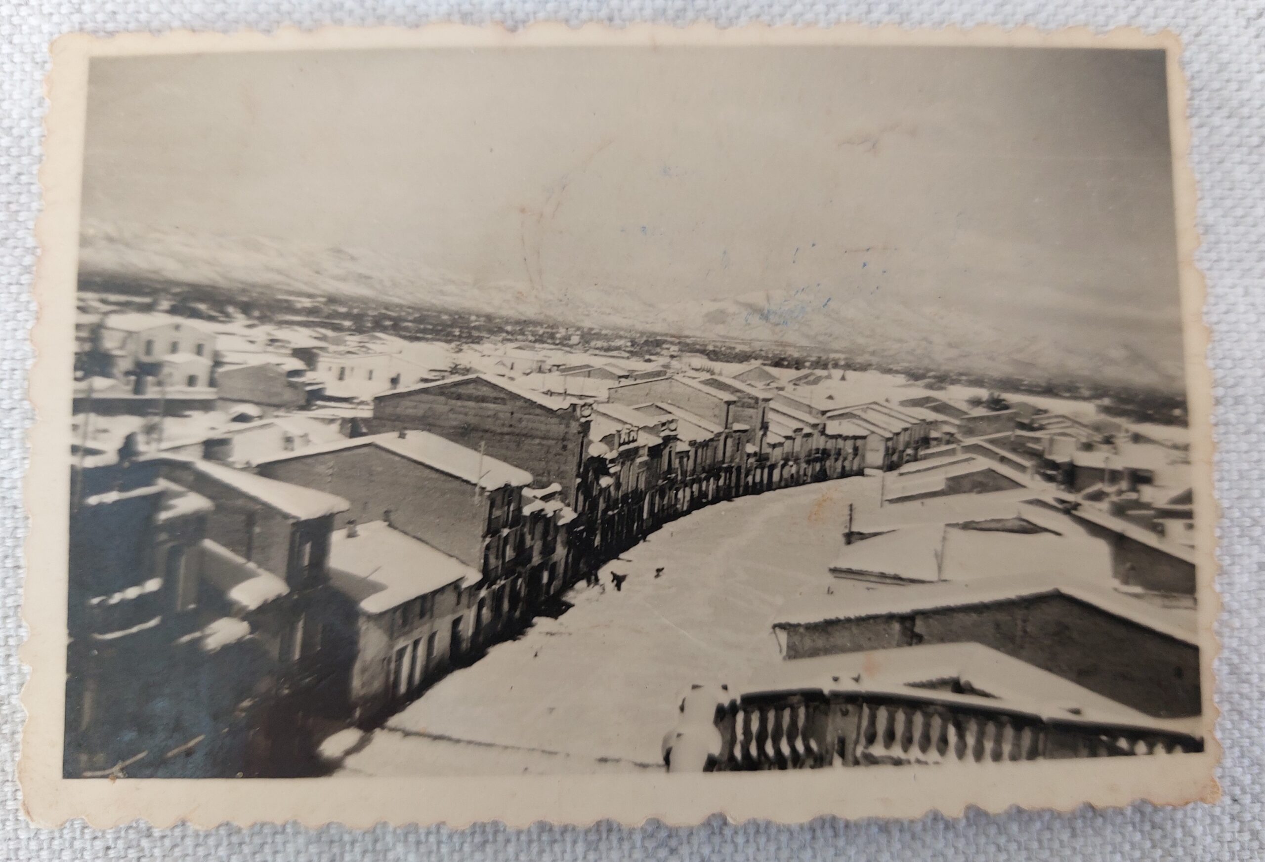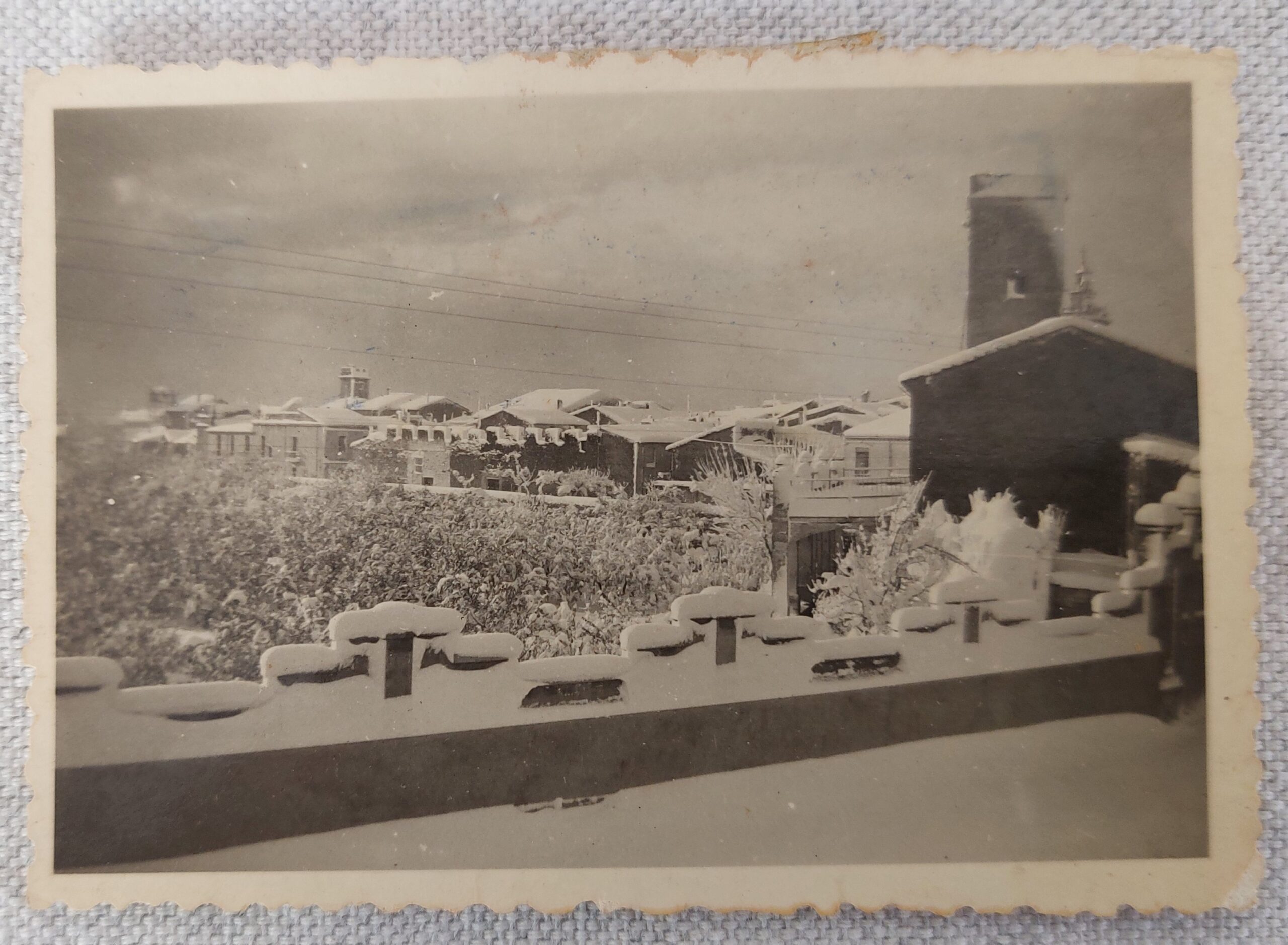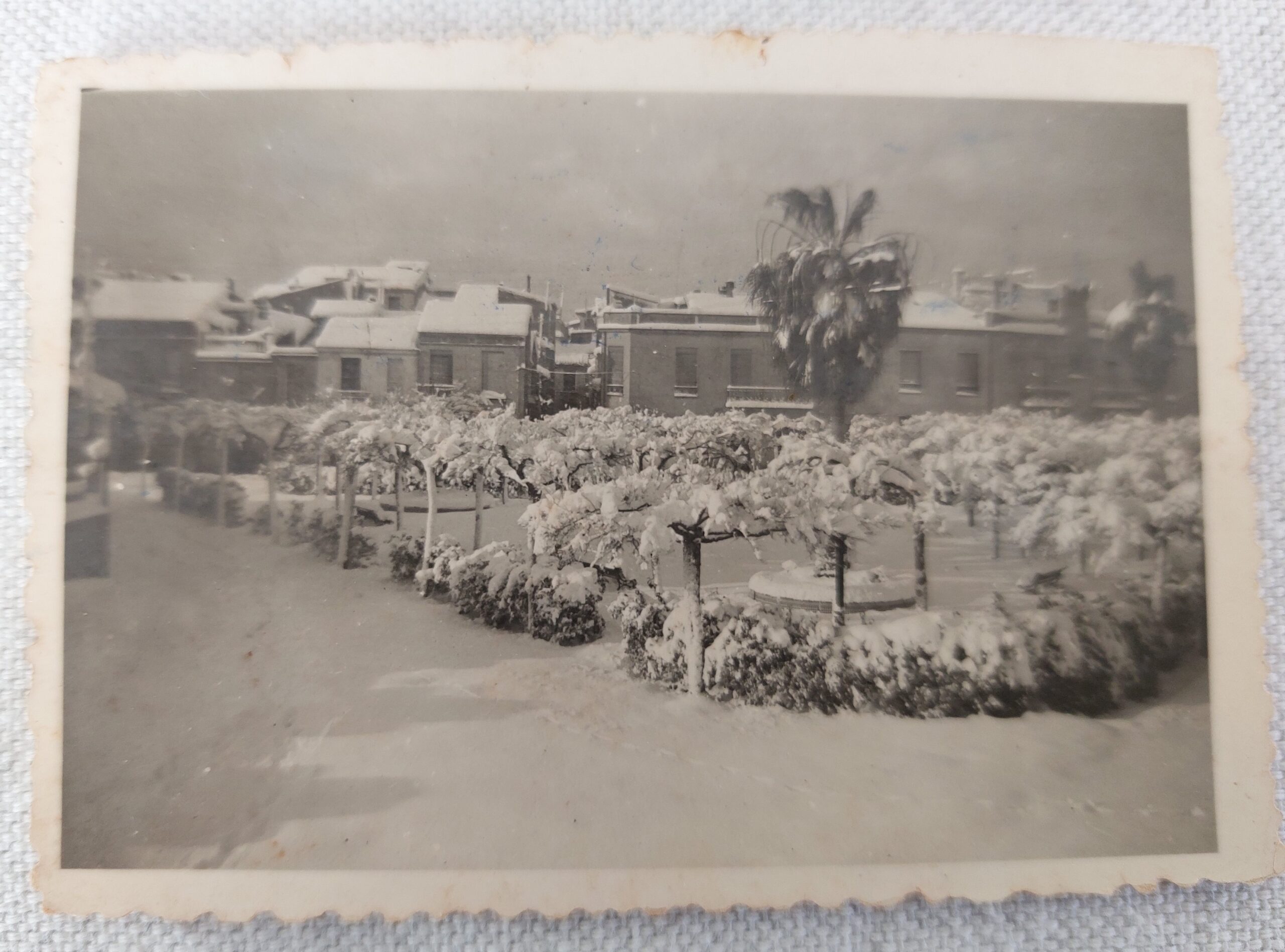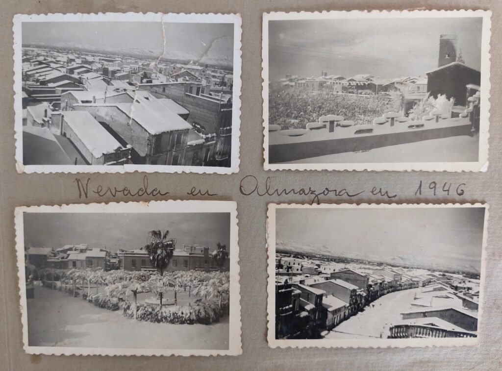 Mon pare, el Maso, em va deixar tres àlbums de fotografies que abracen des dels anys trenta als seixanta. La nevada del 46 omplia dues fulles d’un àlbum petit; set imatges que reproduïm en aquesta entrada. Per al llibre “Almassora en blanc i negre” vam fer diverses aportacions, dues d’aquesta nevada i d’altres de la del 54 (aquestes amb l’autoria de Rodolfo Agut, que vam reproduir i ampliar per a la carpeta de La Vila-roja). Les del 46, erròniament, hi apareixien com eixides de l’arxiu de José Galí; amb tot, desconeixem l’autor dels originals.
